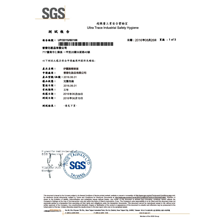 SGS檢測產品,不含致癌傷害身體防腐劑