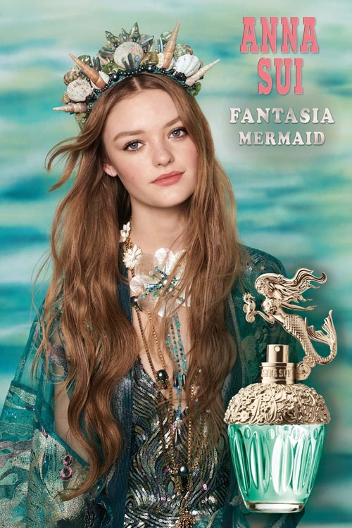 Anna Sui童話美人魚淡香水由被譽為精靈系代表的時尚界新星Willow Hand來完美詮釋美人魚公主,在她神祕的微笑中流露出期待冒險的興奮樣貌,彷彿在海岸邊會遇上一位意想之外的新朋友。擅長捕捉人物神韻的攝影大師Steven Meisel掌鏡拍攝形象廣告,讓Anna Sui女孩都深深地沉浸在藍綠世界中,感受海洋中傳來的神秘氣息。