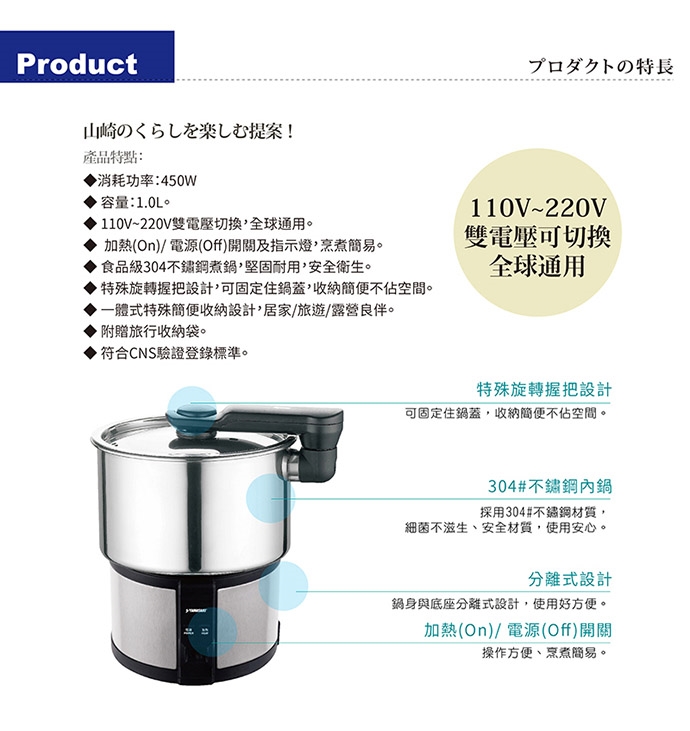 ● 加熱(On)/ 電源(Off)開關及指示燈,烹煮簡易。