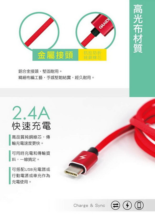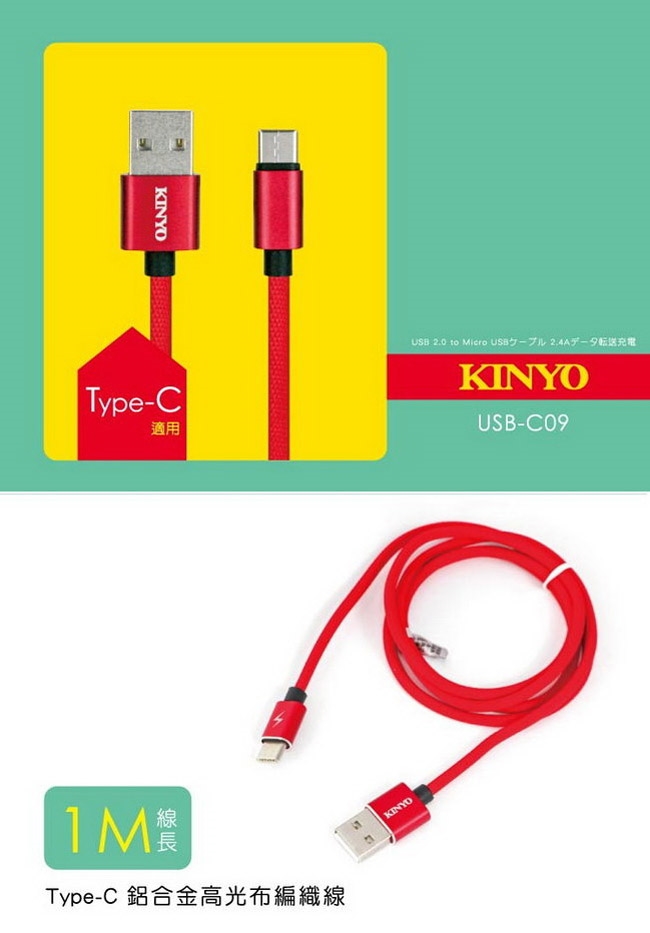 【KINYO】USB Type-C 鋁合金高光布快速充電傳輸編織線1M(USB-C09)