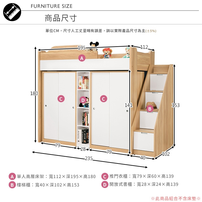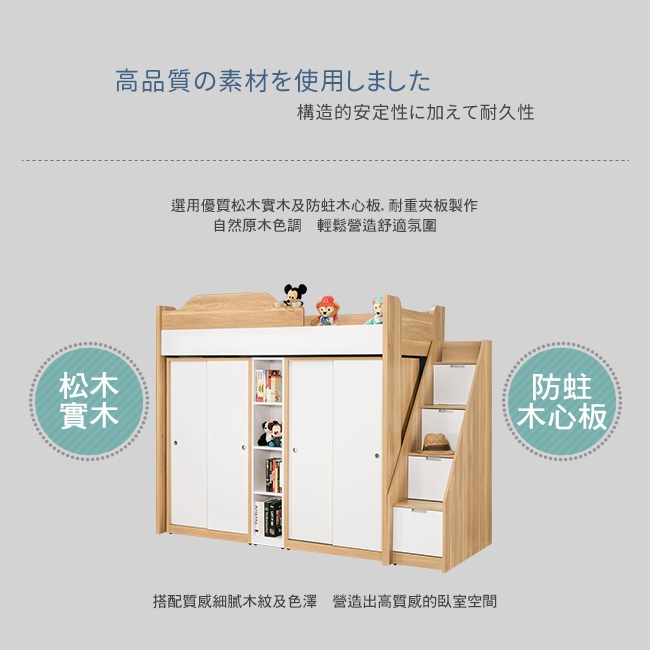 優質松木實木+防蛀木心板+耐重夾板製作,整體結構穩固耐用!