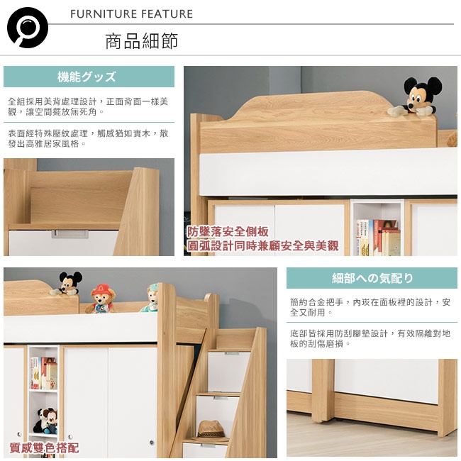 上鋪的造型側板,避免從上鋪跌落的設計,兼顧安全與美觀!