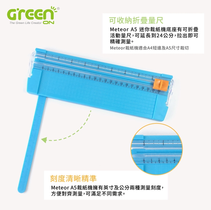 Meteor A5裁紙機擁有英寸及公分兩種測量刻度,方便對齊測量,可滿足不同需求。