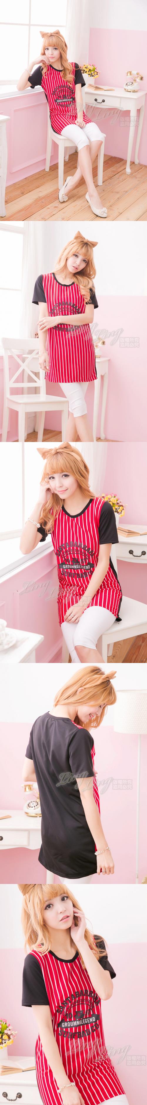 商品詳細介紹 相當有型的一款棒球接袖T運用了直條紋的設計元素~以及美式風格的印字設計輕易就能穿出鮮明個性感~長版的剪裁搭配力也提升無論當洋裝單穿或搭窄褲~都可以瞬間成為街頭焦點!適合S-M號的女孩 ↓個性紅 ↓簡約黑 使用方法說明 無 注意事項 如商品詳細說明