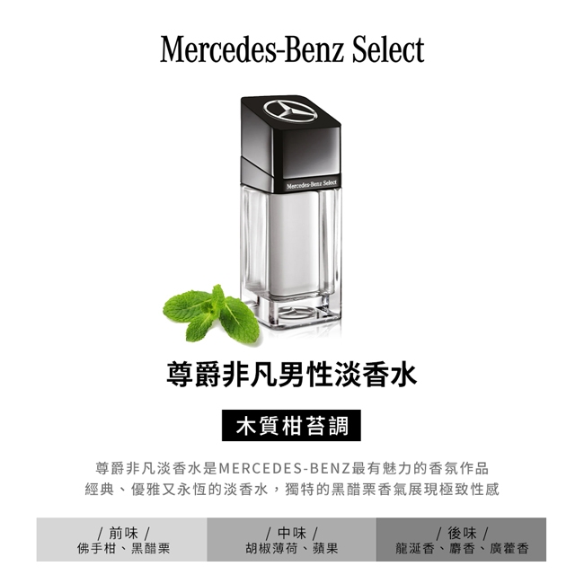 尊爵非凡淡香水是Mercedes-Benz最有魅力的香氛作品,經典、優雅又永恆的淡香水展現精緻的性感。