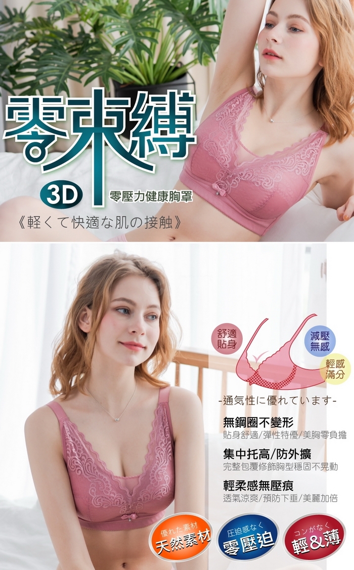 無鋼圈設計,讓妳在任何活動中自由伸展無壓力