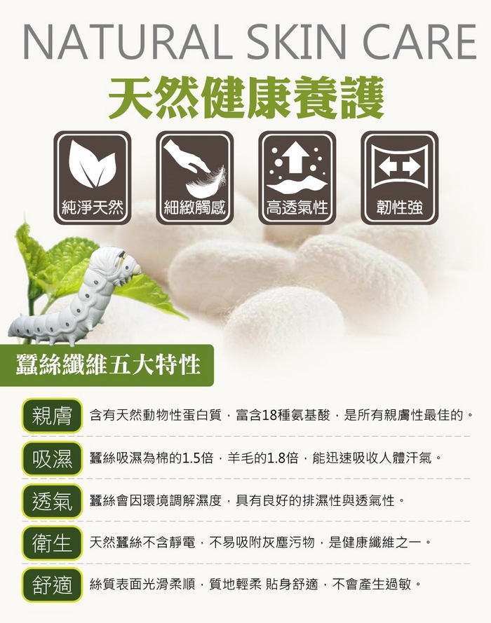 內裡添加舒適透氣100%蠶絲面料,呵護肌膚,透氣涼爽