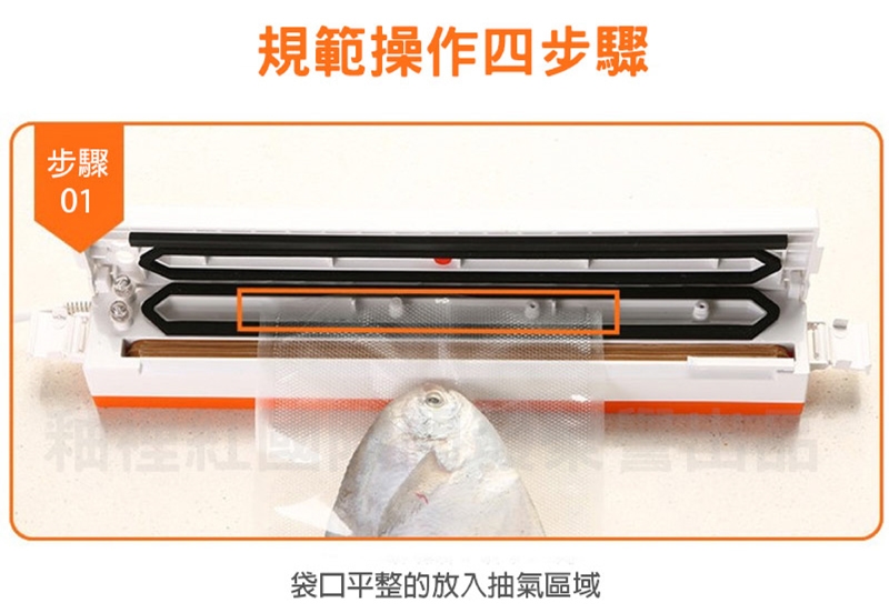 4.請勿直接包裝「粉末類」及「液體類」以免吸入機器造成商品損壞或危險。