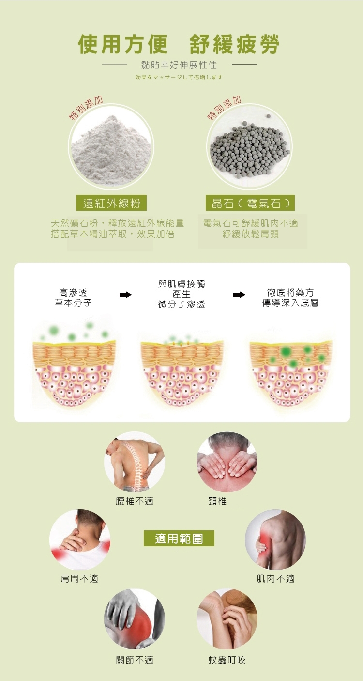 將貼布貼於患部4~6小時,可休息1小時再繼續使用,並可依個人狀況增減使用