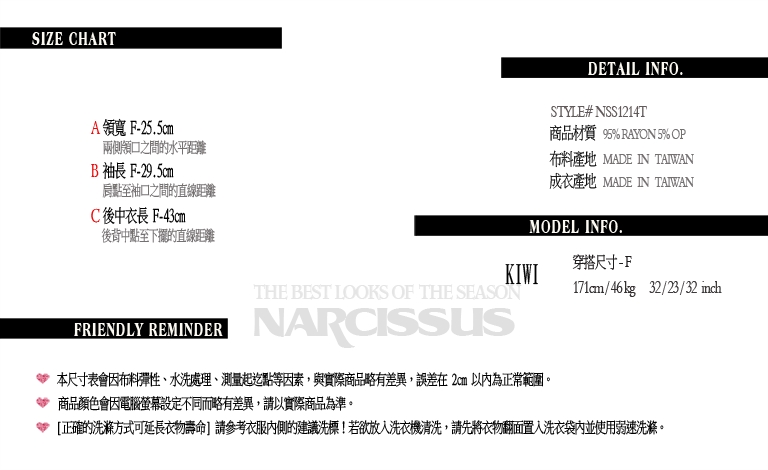 A. 本尺寸表會因布料彈性, 水洗處理, 測量起迄點等因素, 與實際商品略有