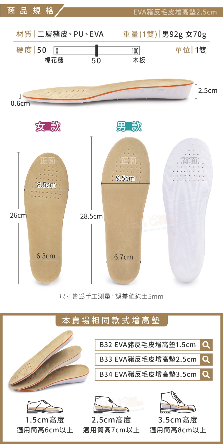 豬二層皮增高墊 磨砂皮增高墊 二層豬皮增高墊