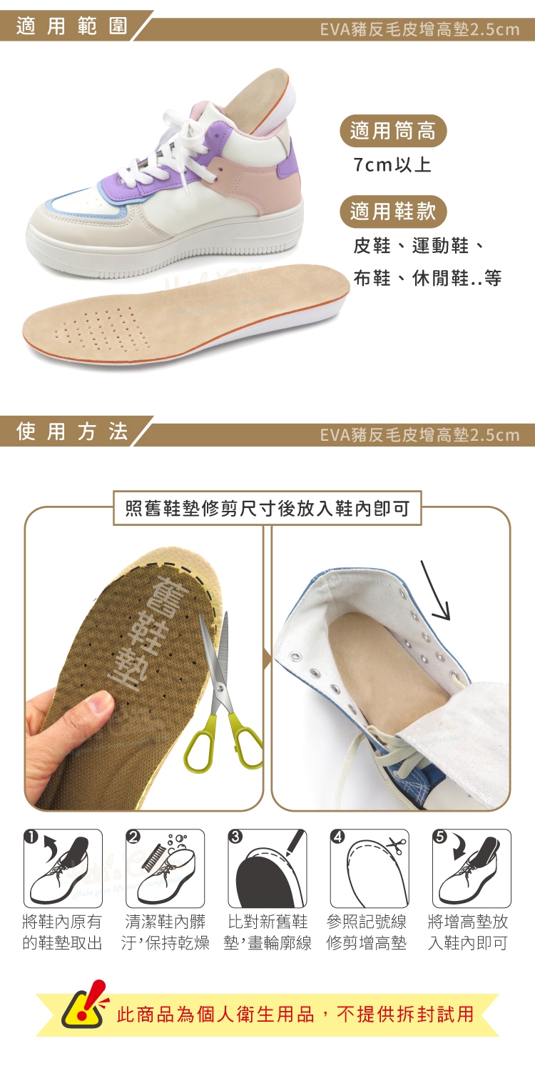 照舊鞋墊修剪尺寸後放入鞋內即可