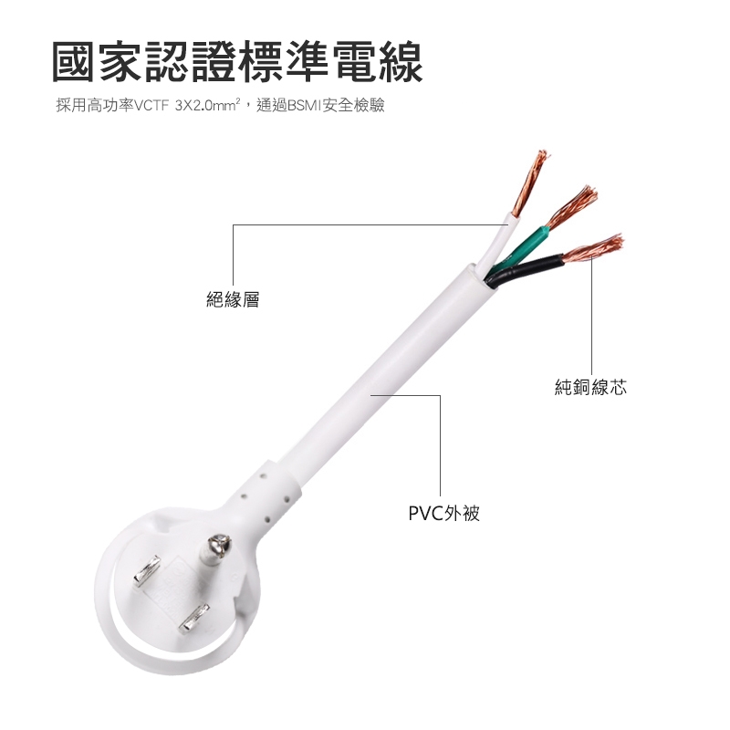 ‧ 線材採用VCTF 2.0mm² 粗電線