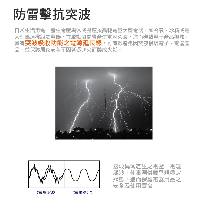 ※本產品為室內使用,請勿置於潮濕空間或於戶外使用並遠離火源或高溫環境下使用。※請勿自行拆解產品可能導致功能無法正常運作。※請注意開封避免包材刮手。※ 檢查本產品時,請移除所有插頭。※含有過載保護功能,過載使用時會斷電。※本產品已投保新台幣一千萬產品責任險。※請詳閱包裝上說明後購買,拆封恕不退換!※本產品限台灣地區使用(For Taiwan use only)