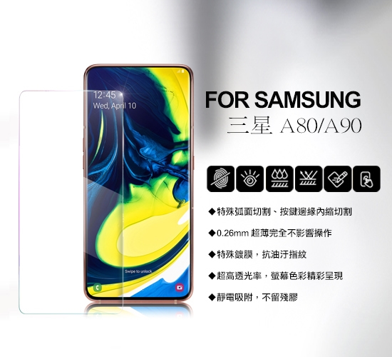 Xmart for 三星 Samsung Galaxy A80/A90 薄型 9H 玻璃保護貼-非滿版