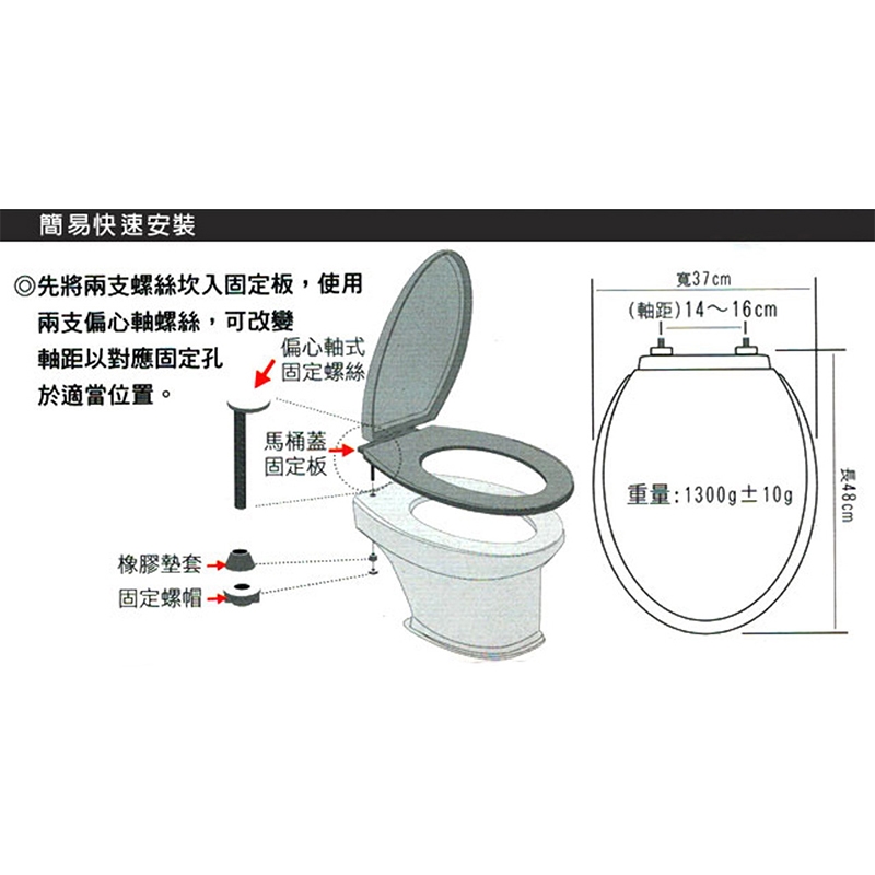 內 容 物:馬桶蓋x1、螺絲x2、橡膠墊套x2、固定螺帽x2