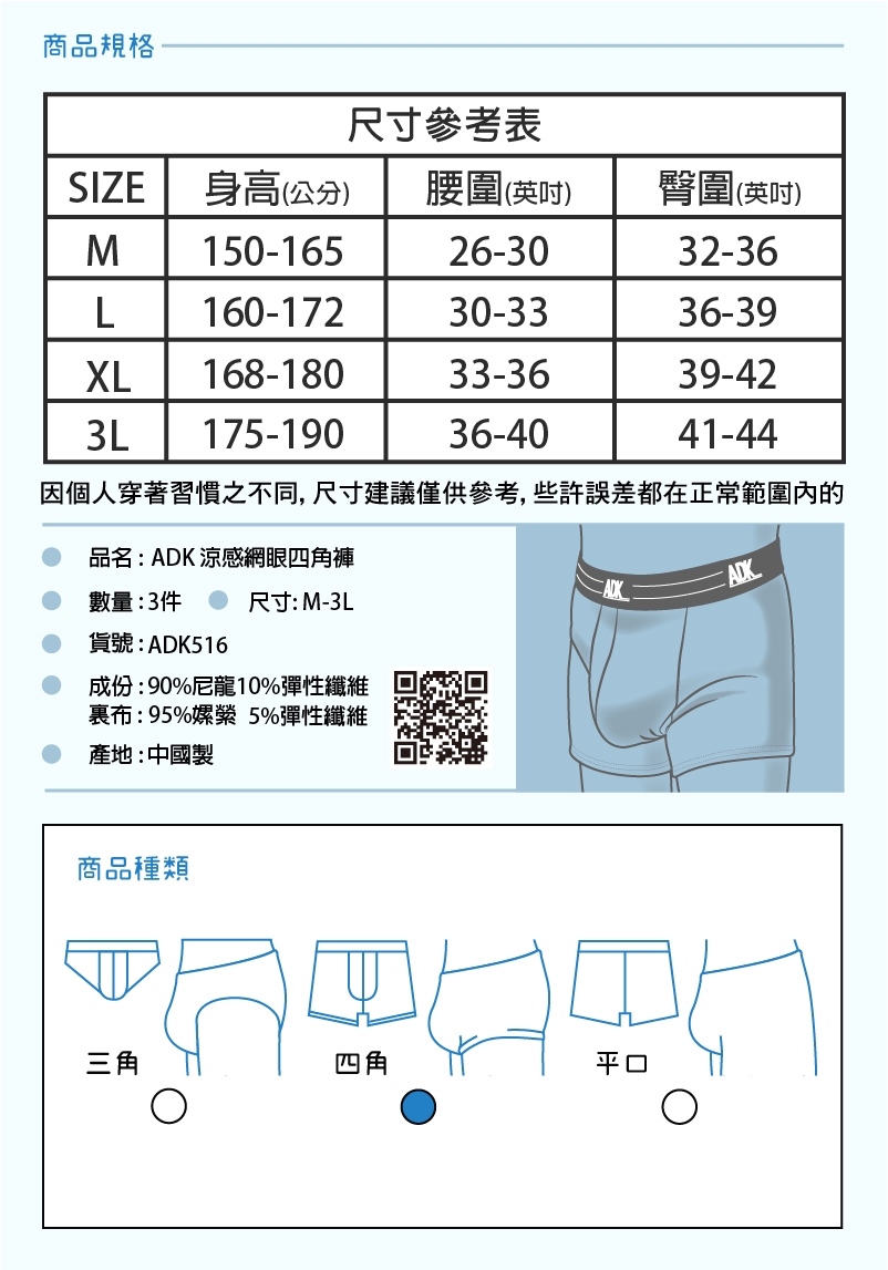 ◆商品:ADK 涼感網眼四角褲