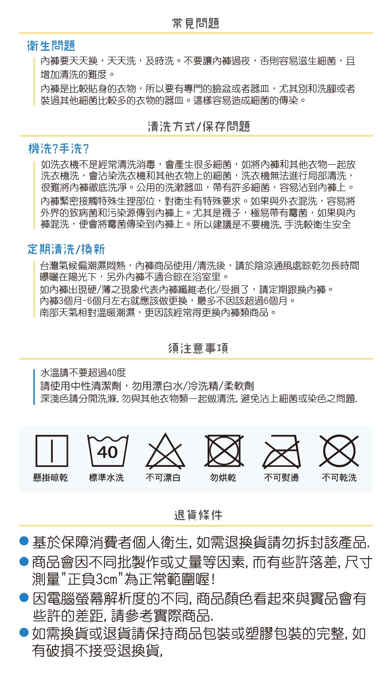 ※基於保障消費者個人衛生,此貼身衣物恕不接受退換貨,謝謝您!