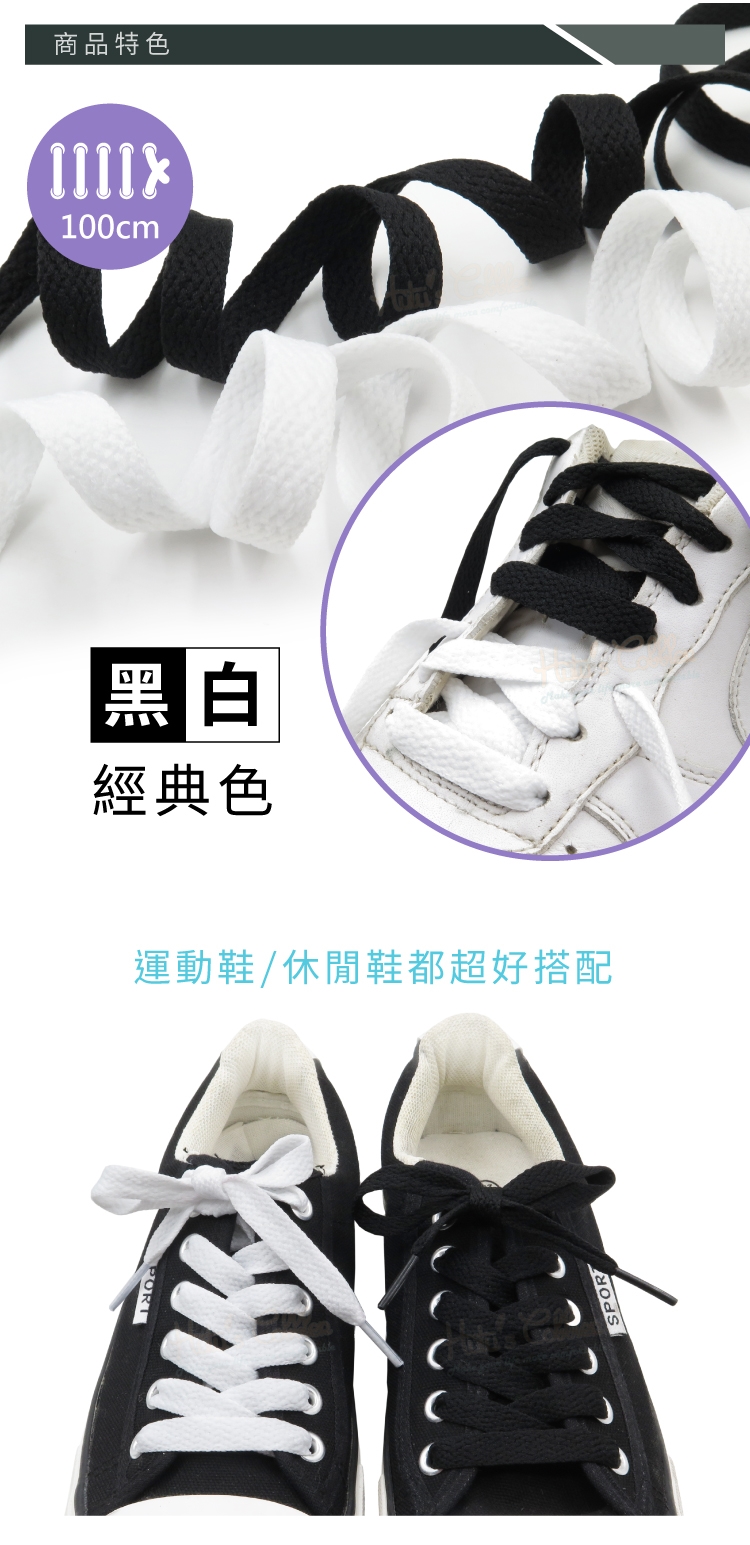 1.長度100cm:黑白經典色,運動鞋、休閒鞋都超好搭配