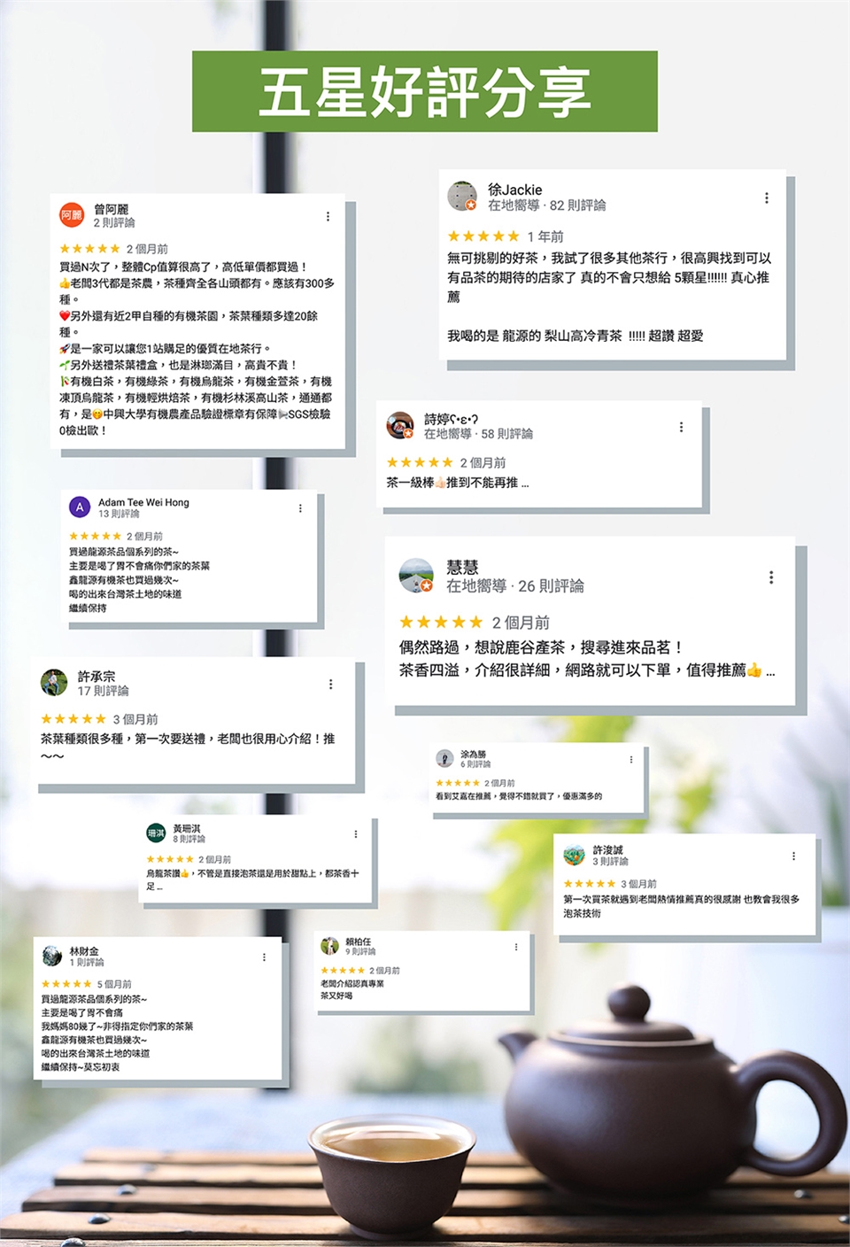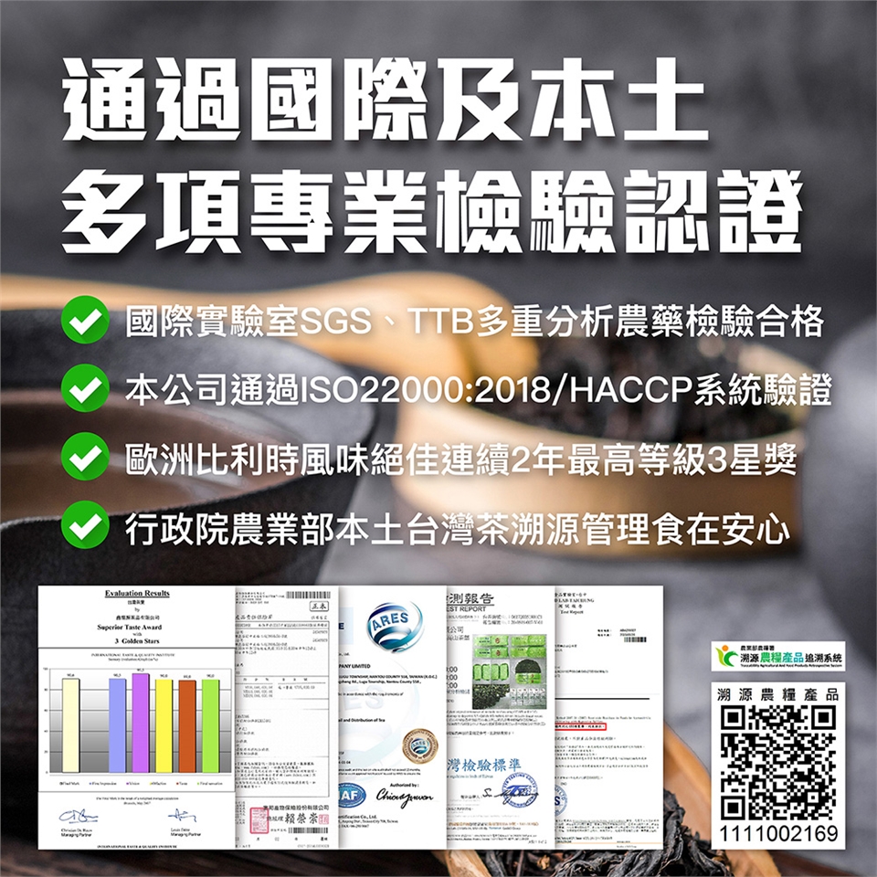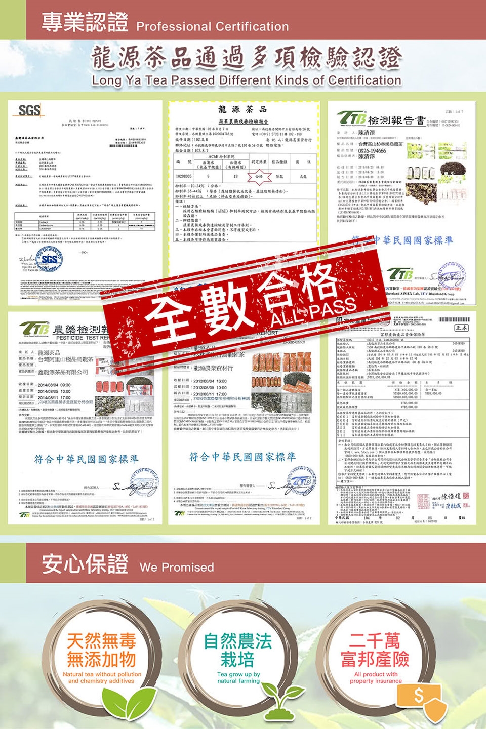 1. 本公司堅持100%台灣茶葉並通過農藥檢測。