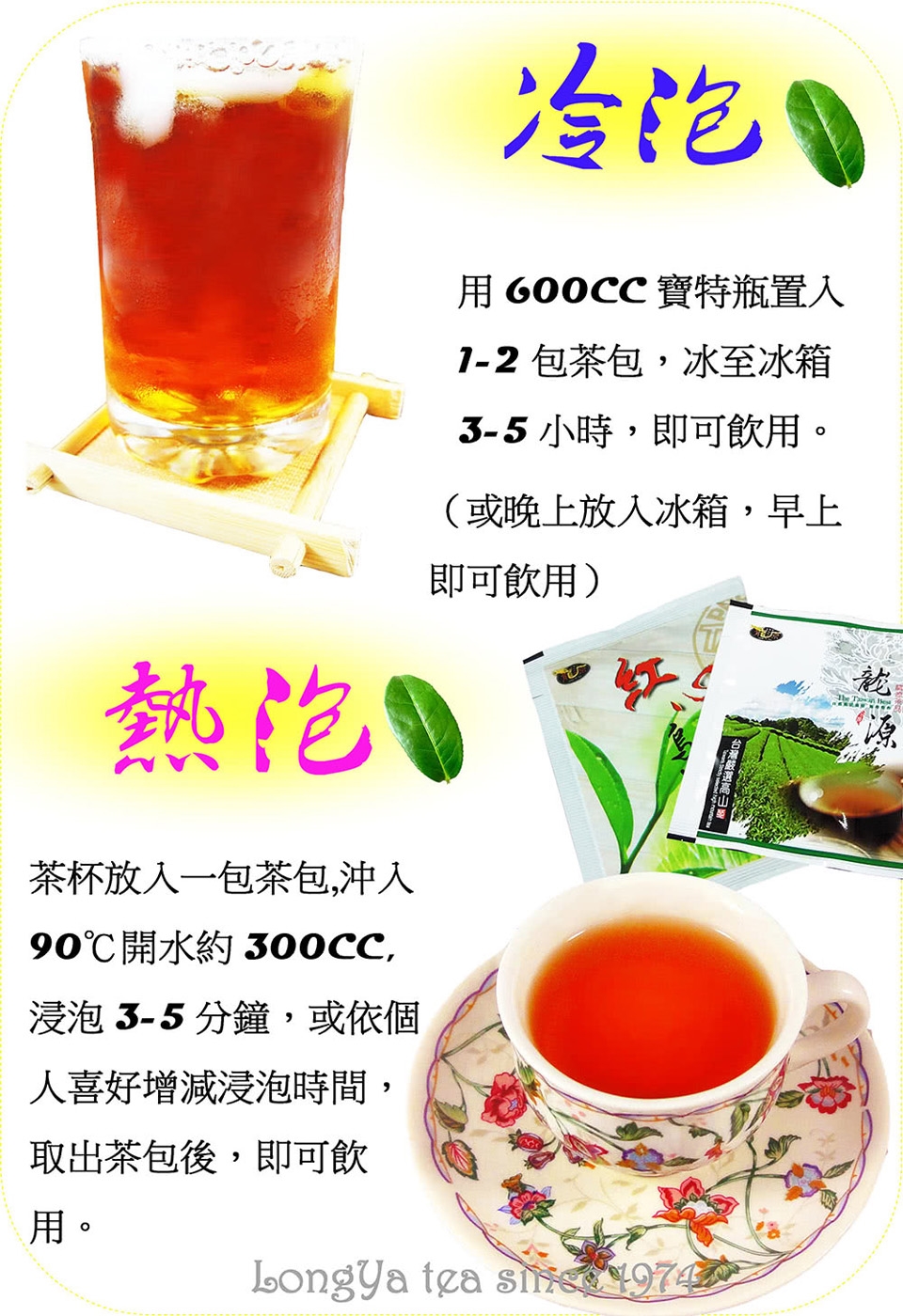 ◎冷泡茶:用大約600cc的白開水,並放入些許茶葉或1包袋茶,大約2-3小時後,色澤轉茶青色即可飲用,夏日亦可以放入冰箱冰涼後即可得健康又甘醇之冷飲。