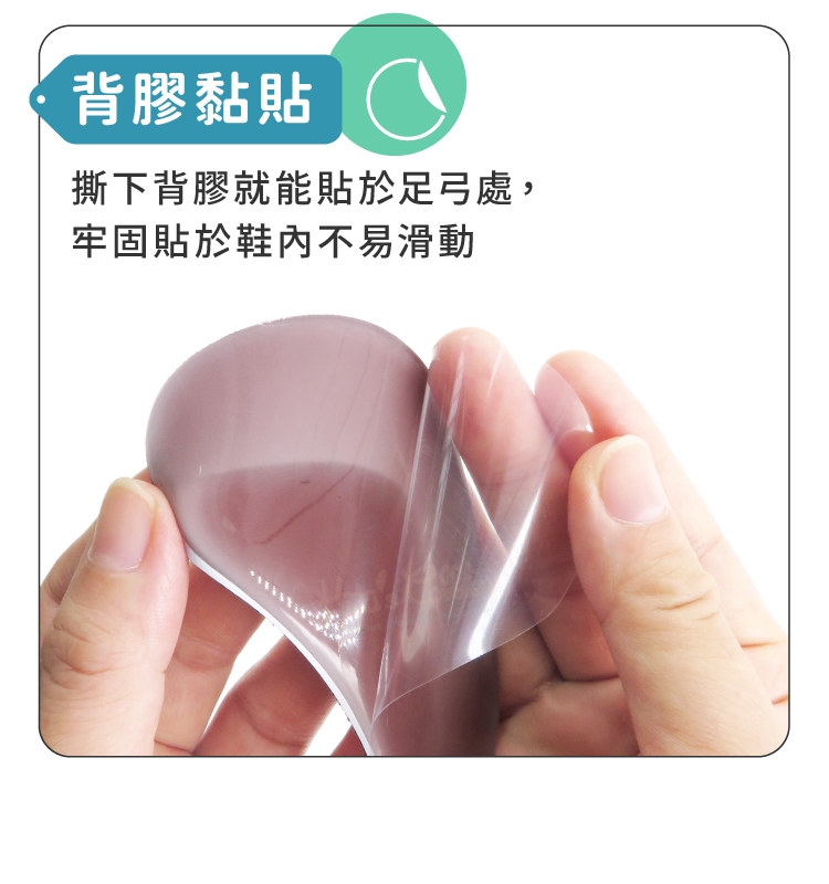 背膠黏貼:撕下背膠就能貼於足弓處,