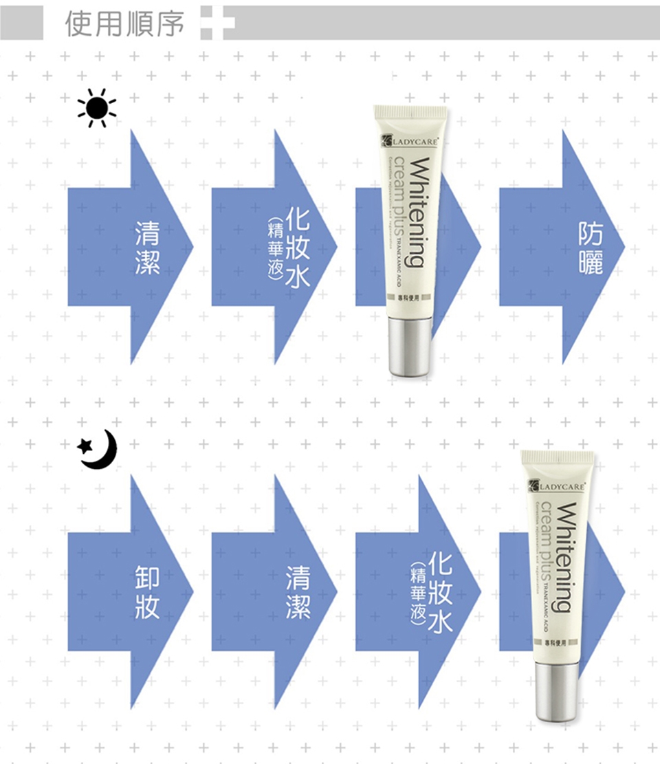 每天早晚使用於化妝水及精華液之後,取適量塗抹於臉部肌膚,輕輕按摩直到吸收。