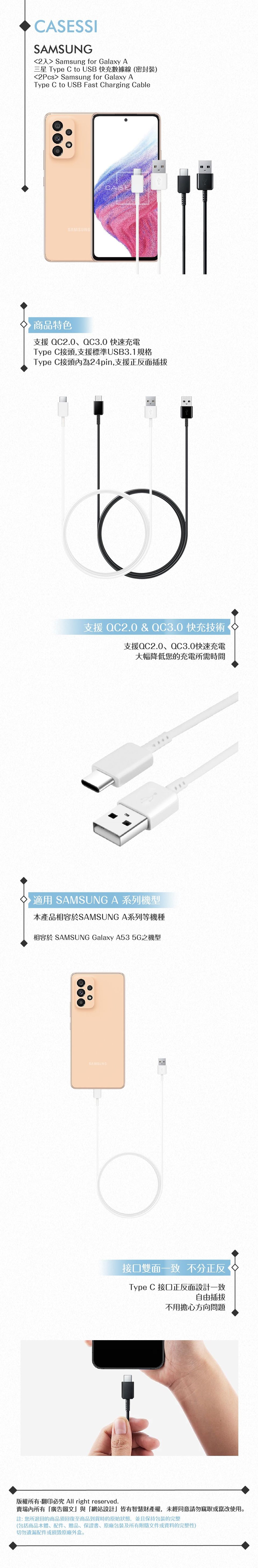 商品名稱:Samsung 三星製造 Galaxy A Type C to USB 快充數據線