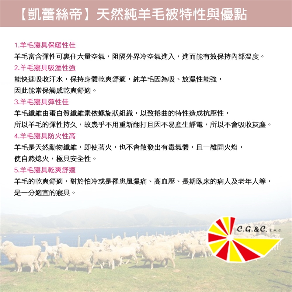 【凱蕾絲帝】澳洲天然100%純羊毛被是您最佳的選擇喔!