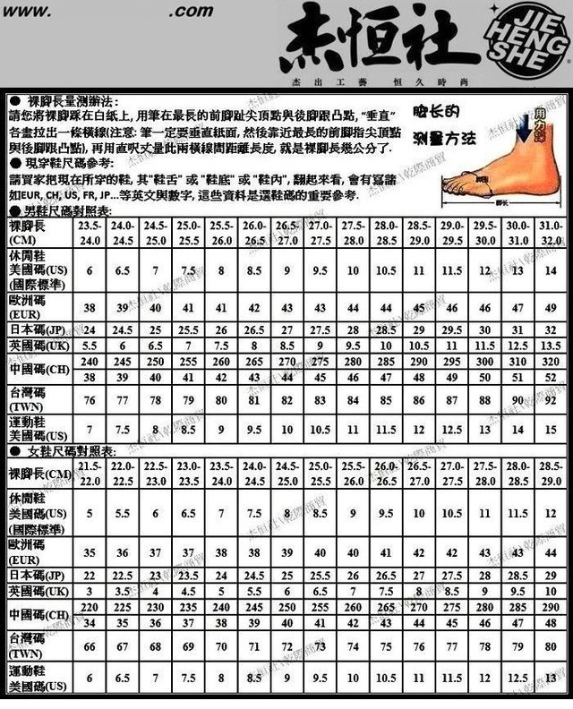 →可以裸腳長減小0.5cm後再對應選鞋碼!