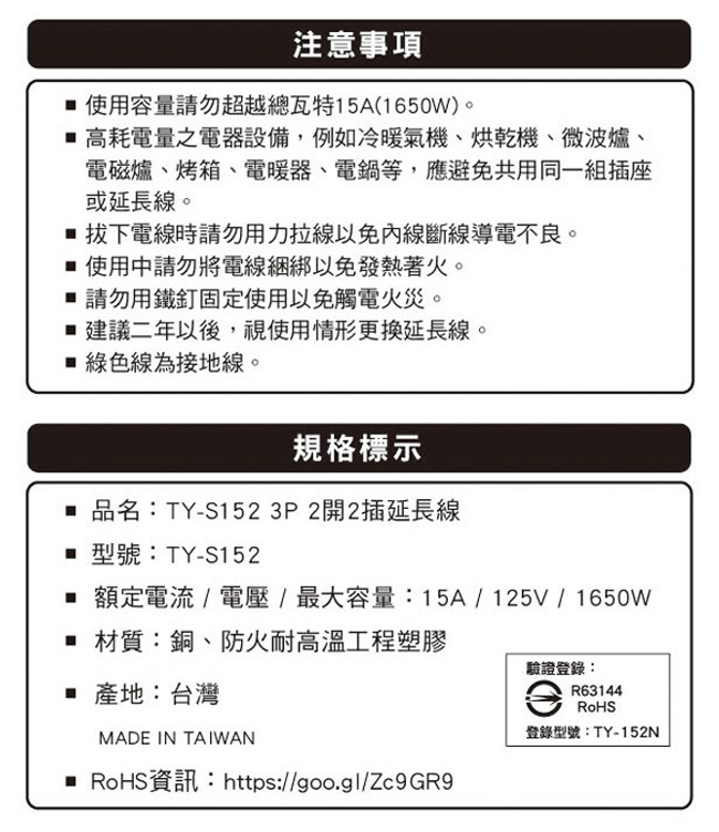 ◎建議二年以後,視使用情形更換延長線