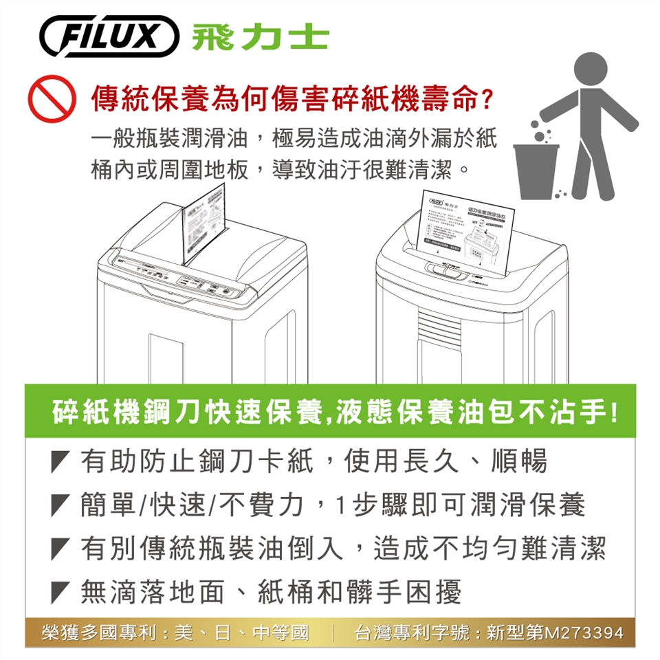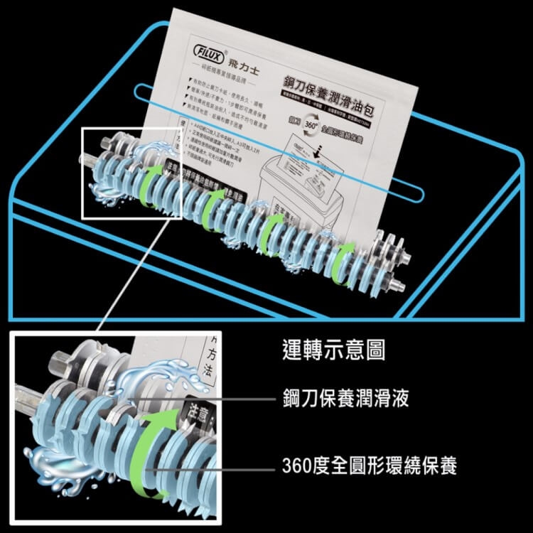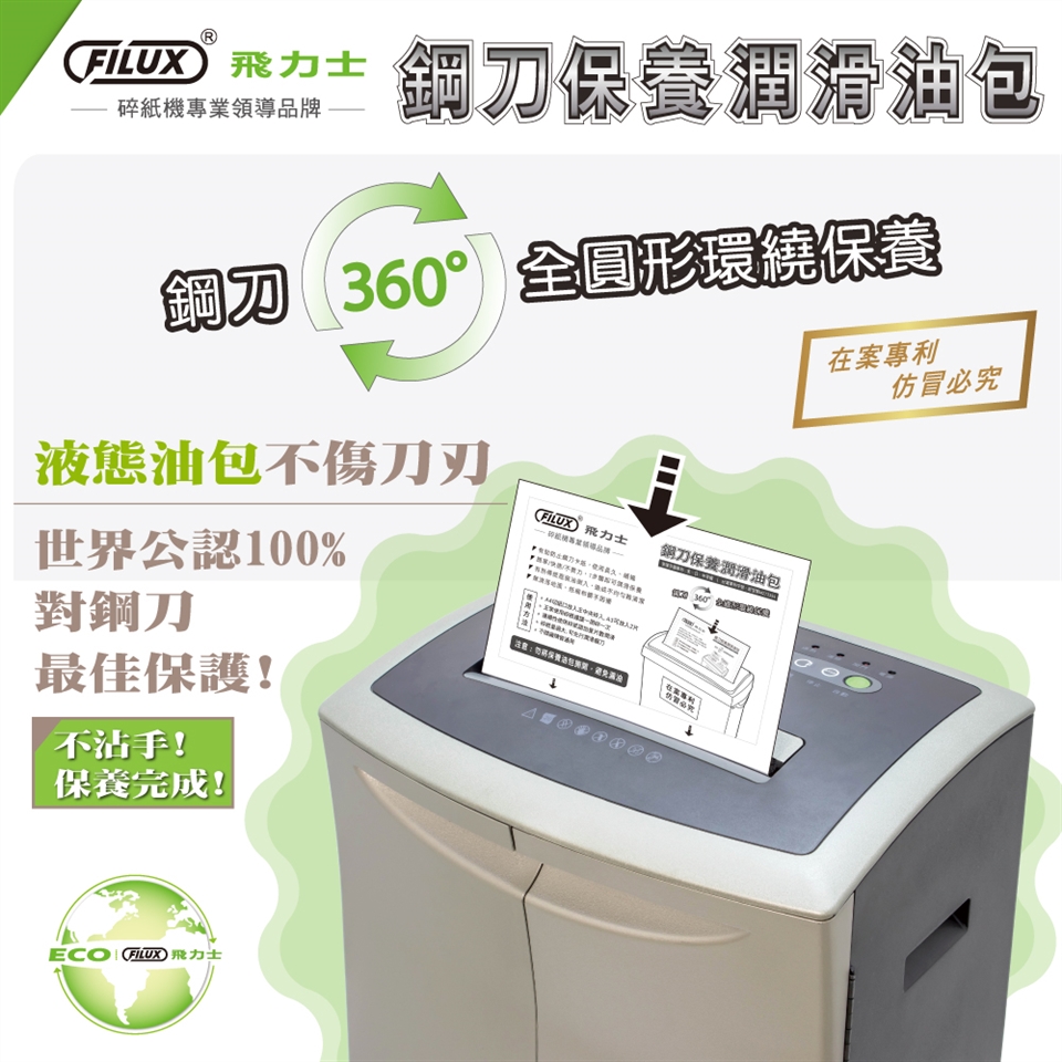 《FILUX 飛力士_碎紙機鋼刀保養潤滑油包》簡易保養使用方式: