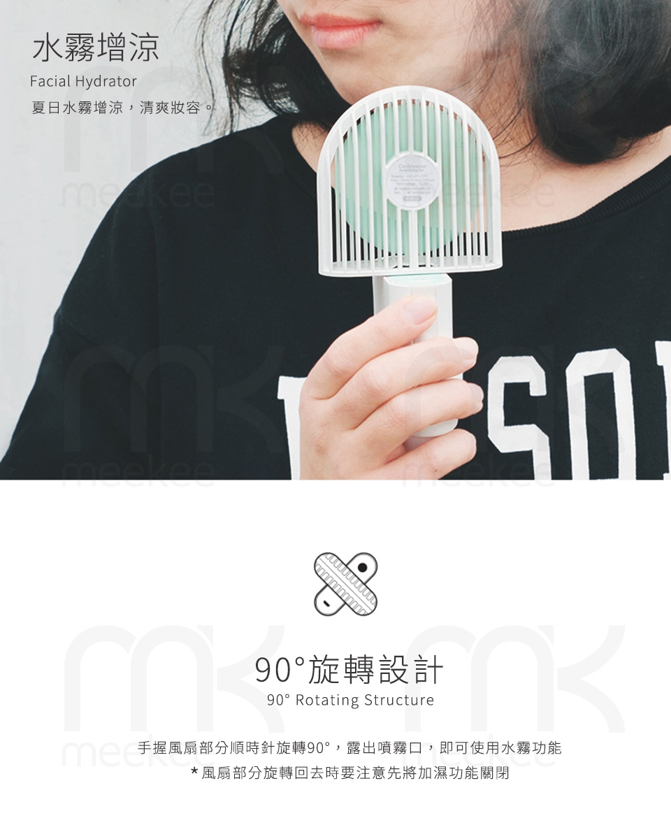 商品詳細介紹 使用方法說明 請參閱圖片、說明書。 注意事項 注意事項:br/1.若已開啟水霧功能時,要轉回一般狀態時,請先關閉水霧功能。br/2.因風扇使用會產生一定的震動,建議放置於桌面使用時,可放置一塊止滑墊,降低因震動產生的移動及噪音。
