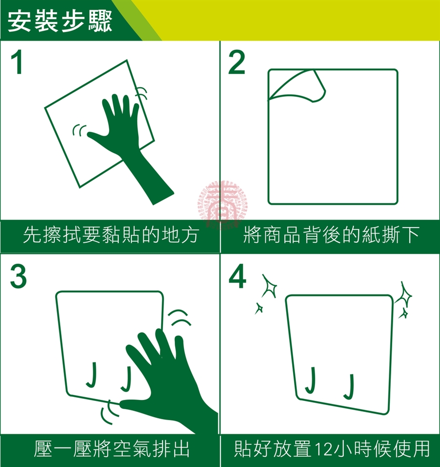 8.本產品黏貼力超強。可適用多種平滑牆壁表面。但無法重複黏貼。