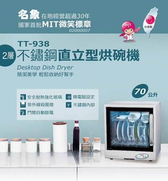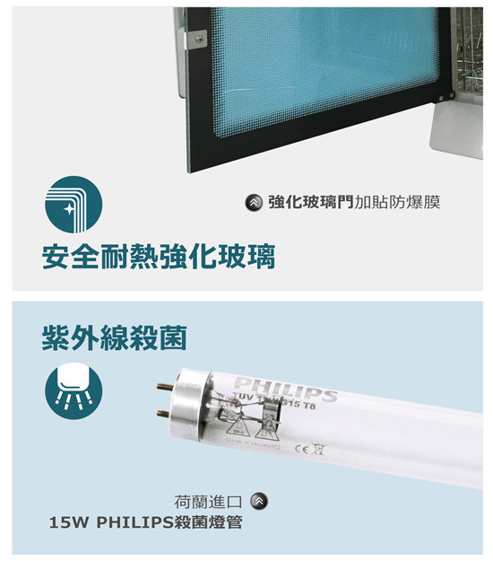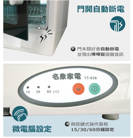 (2) 觸控式面板15/30/60分鐘殺菌烘乾設定