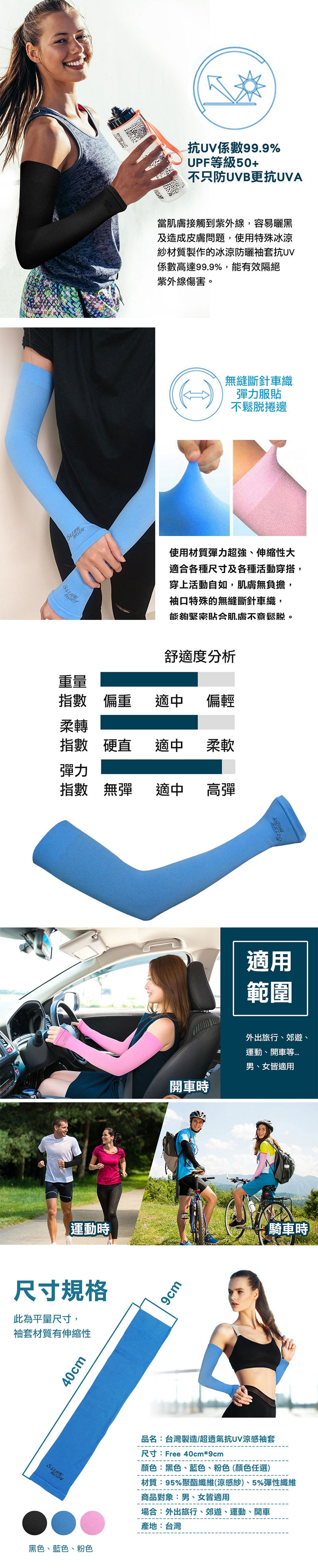 品名:台灣製造/超透氣抗UV涼感袖套