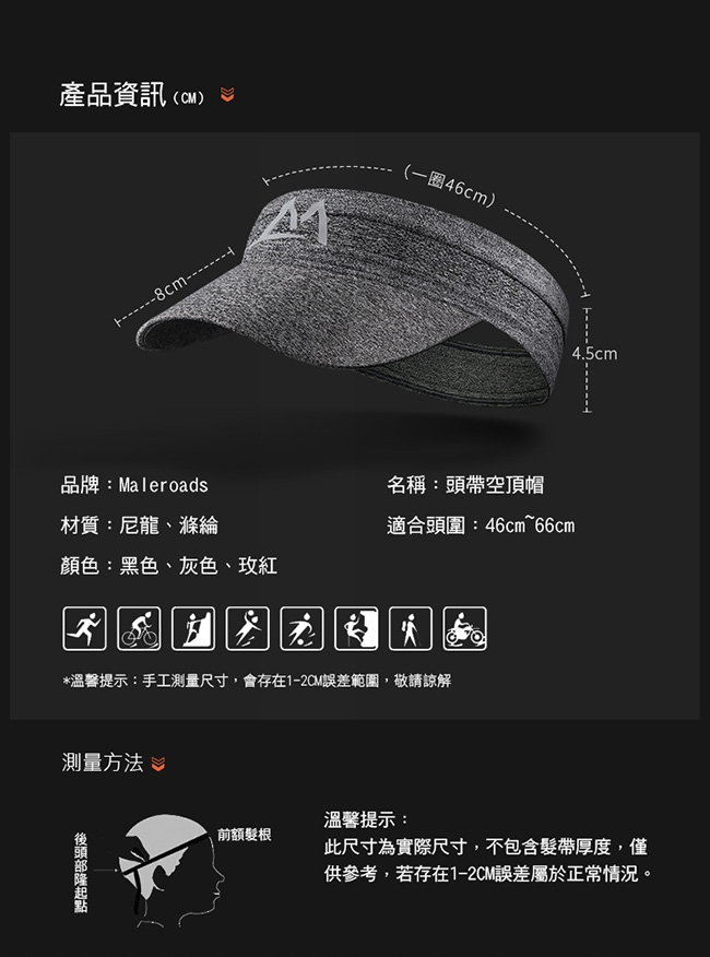 適用頭圍約46cm~66cm,測量方式請參考網頁圖示說明