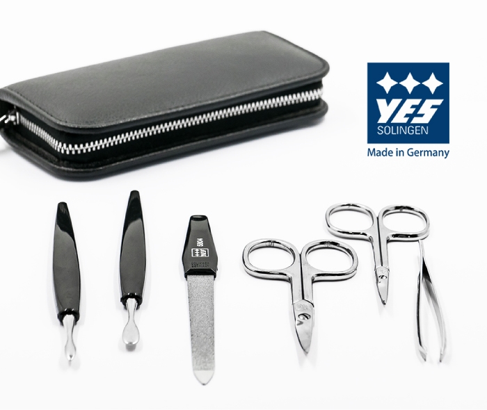 指甲剪或角質層剪刀,組合剪刀,指甲或皮膚鉗,鑷子,指甲清潔器,銼刀等等。幾乎所有儀器均由內部製造,然後鍍鎳,鍍鉻,鍍金或直接由不銹鋼製成。