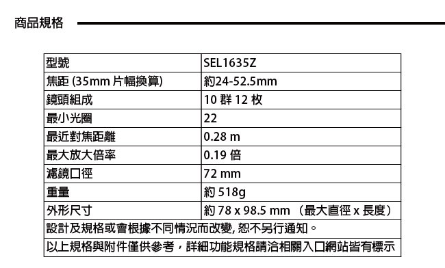 為全片幅 E 接環機身設計的16-35mm 輕巧廣角鏡頭,貢獻高品質拍攝表現。