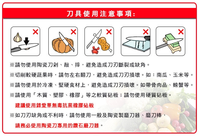 ◆不適用斬切剁帶骨、冷凍食品、南瓜等硬的食材上及請小心輕放。