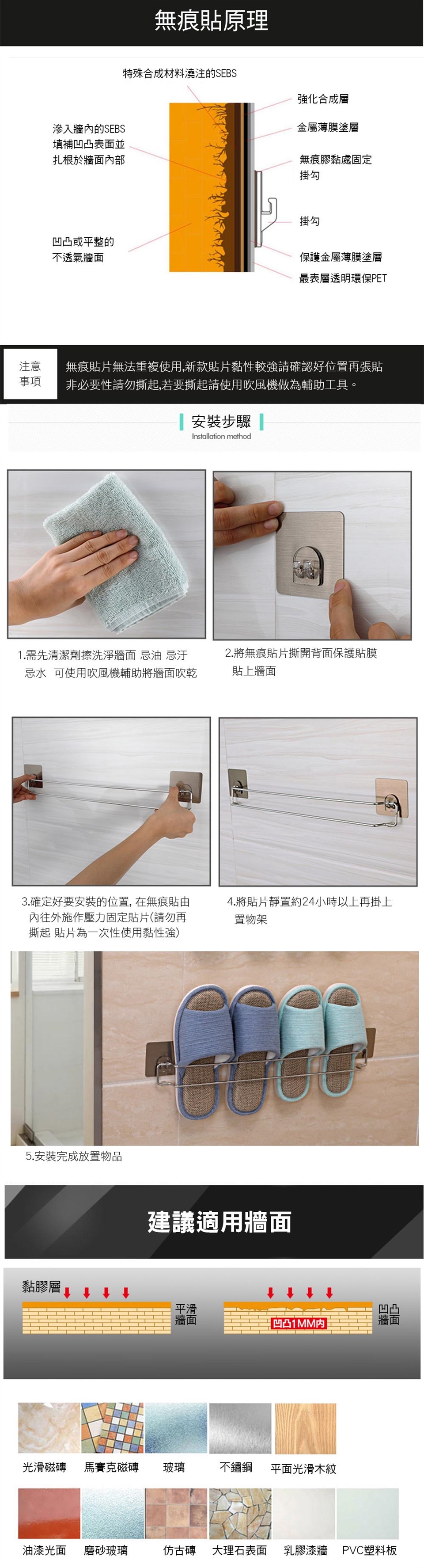 使用功能:無痕貼片無法重複使用,貼片黏性較強請確認好位置再張貼,非必要性請勿撕起若要撕起請使用吹風機做為輔助工具。