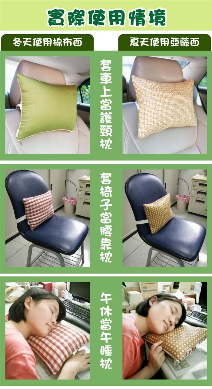 1.天然材質親膚舒適,亞草蓆面、純棉布面,兩面可因應天氣及個人需求使用。