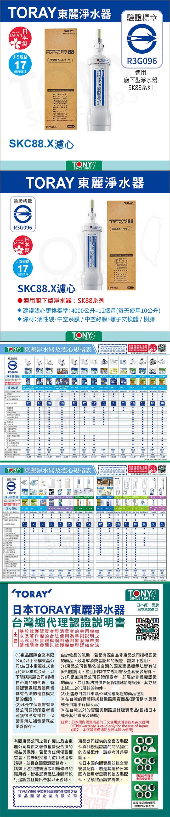 日本東麗 廚下型專用濾心SKC88.X 總代理貨品質保證