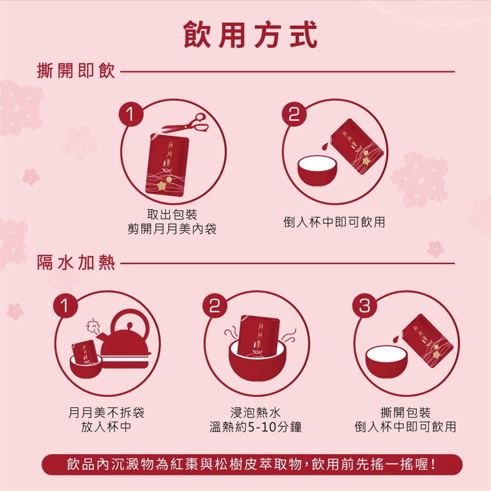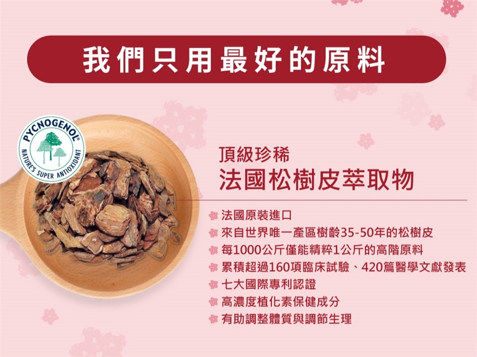 1. 本產品沉澱物無碧容健(松樹皮萃取物)與紅棗萃取物,屬自然現象請安心食用。