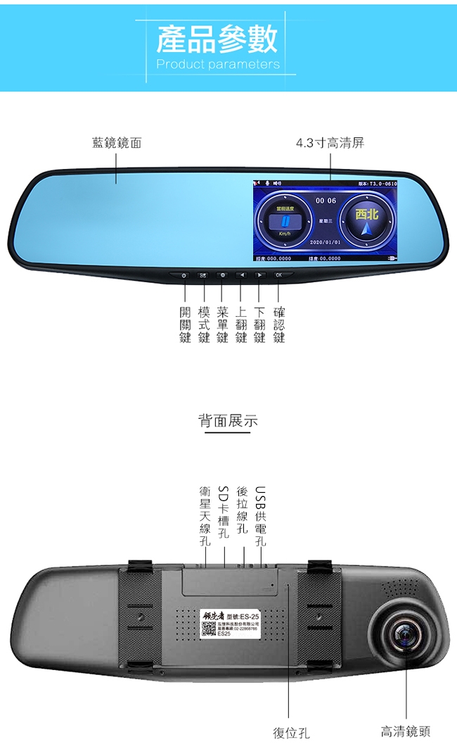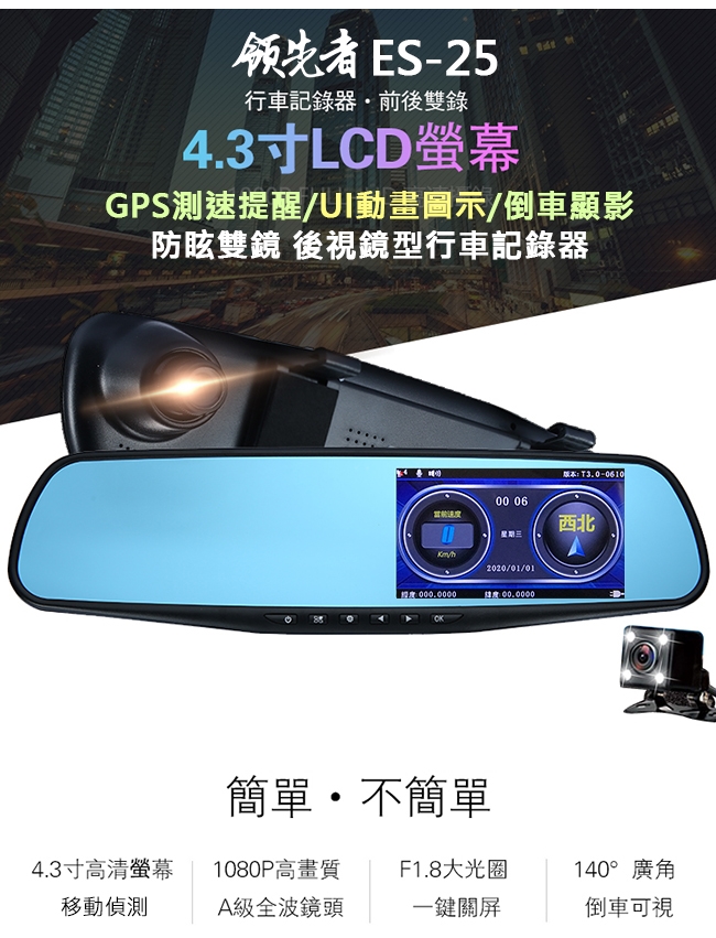 ■4.3吋防眩藍鏡,有效削弱強光減少視覺疲倦