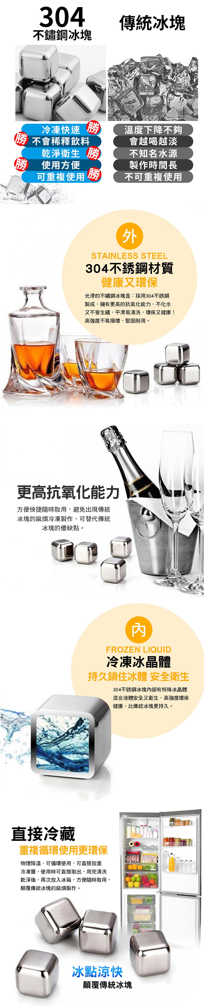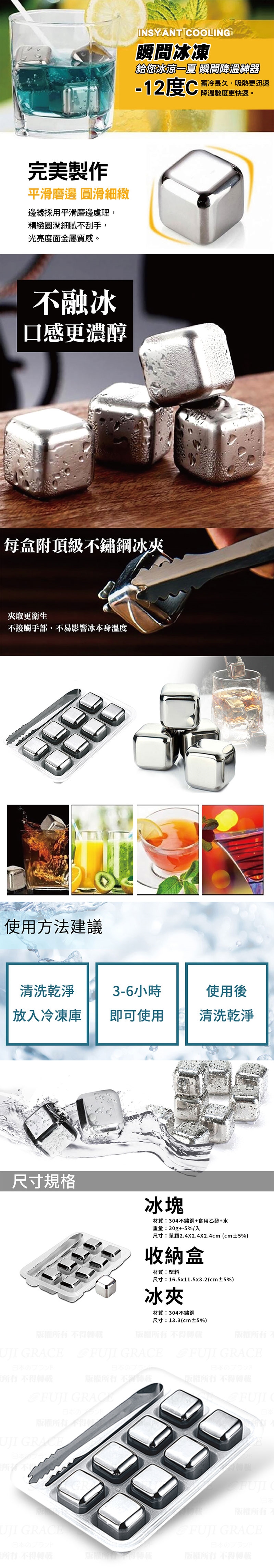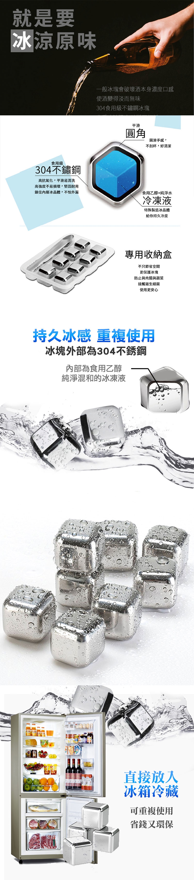 內含:頂級304不鏽鋼冰塊8顆+冰夾1入+收納盒