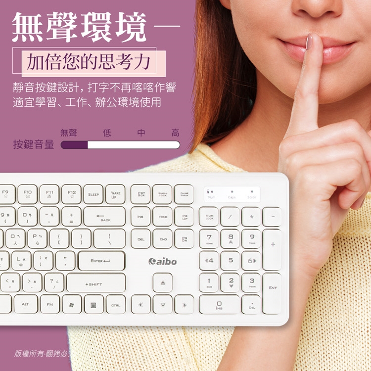特殊無聲靜音按鍵設計,打字不再喀喀作響,有效的減少噪音