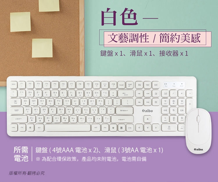 --超薄型簡約文青風,安靜耐用無線鍵鼠組合--