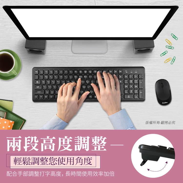 「aibo KM10 2.4G無線鍵盤滑鼠組」圓邊質感鍵帽設計,