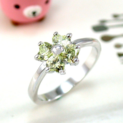 散發著極淺粉綠色澤的精緻美鑽, 切割出獨特的幸運草四瓣葉,